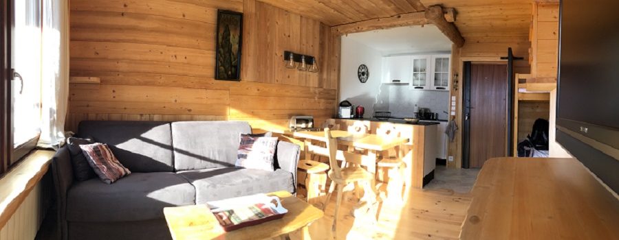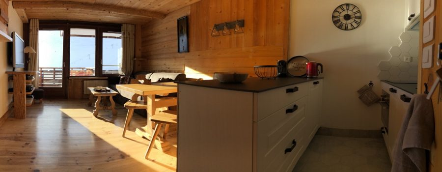Résidence plein centre station, l’appartement a été rénové fin 2019 (rénovation des parquets, cuisine, mobiliers de meilleure qualité – tout en conservant l’esprit chalet).